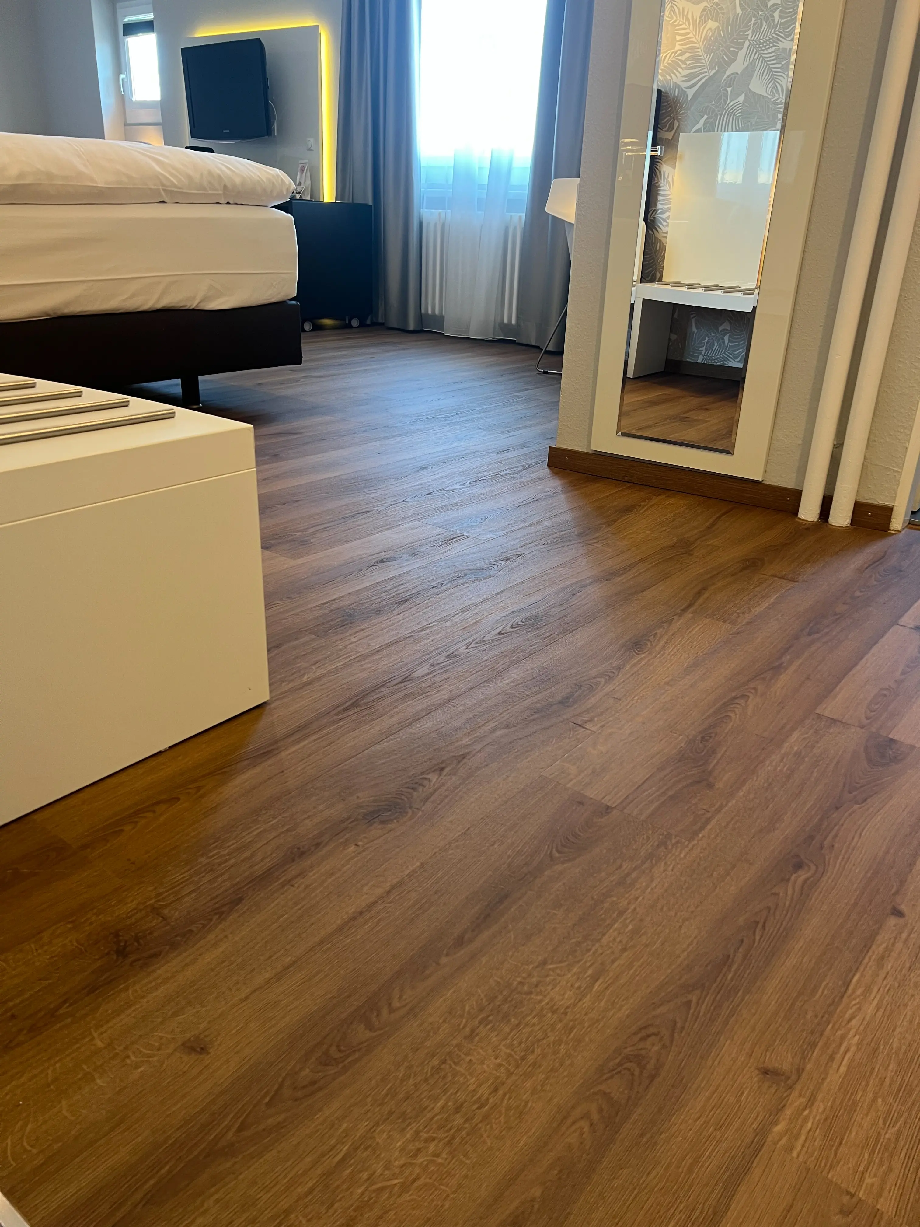 Robuste Vinylböden mit Wohlfühlfaktor. Tolle Bodenbeläge für neue Zimmer im Hotel Spalentor - vielen Dank für das Vertrauen!